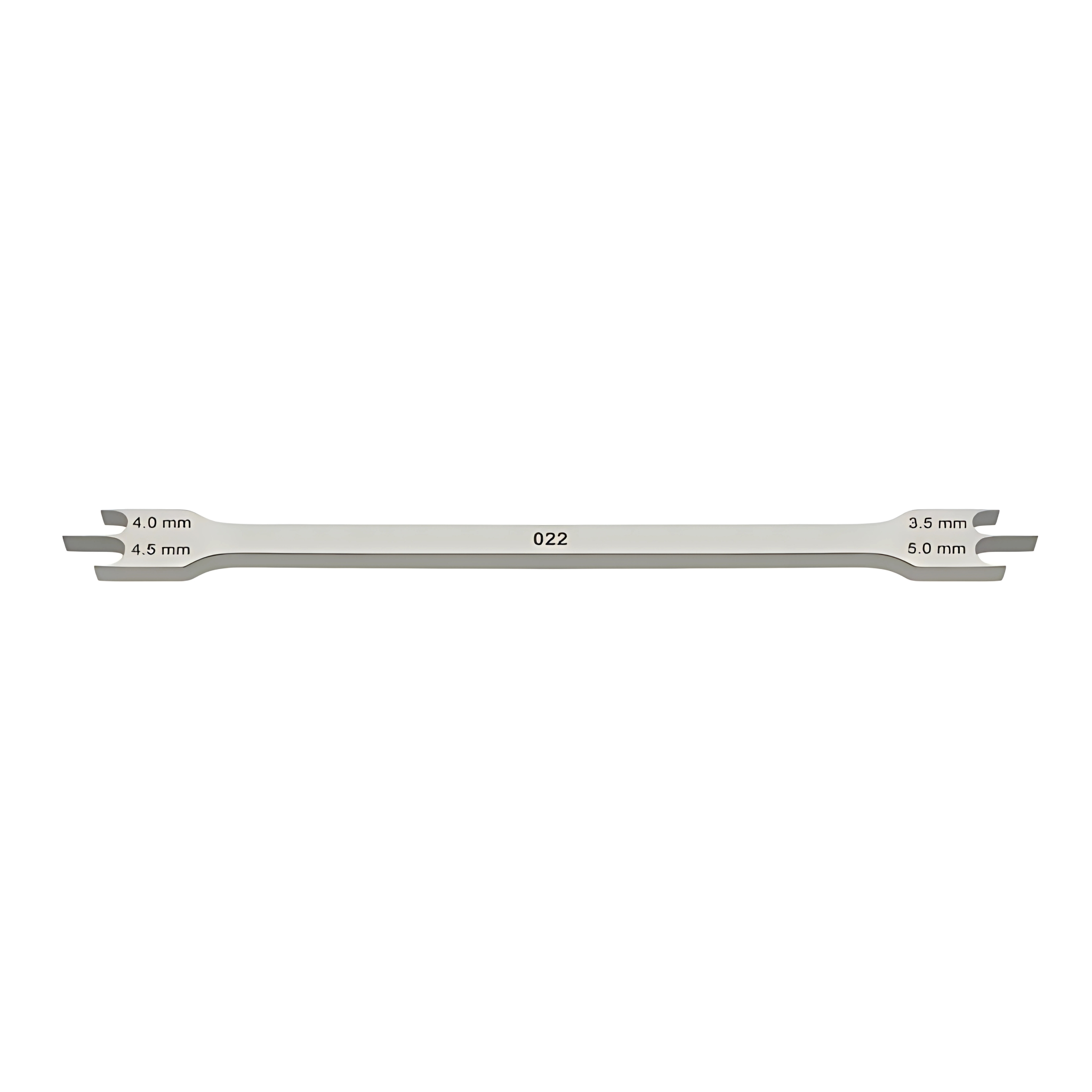 The Aluminum Height Gauge .022" measures the height of bracket placement from the incisal edge. The gauge has 3.5, 4.0, 4.5, and 5.0 mm markings. Cold sterilizable only